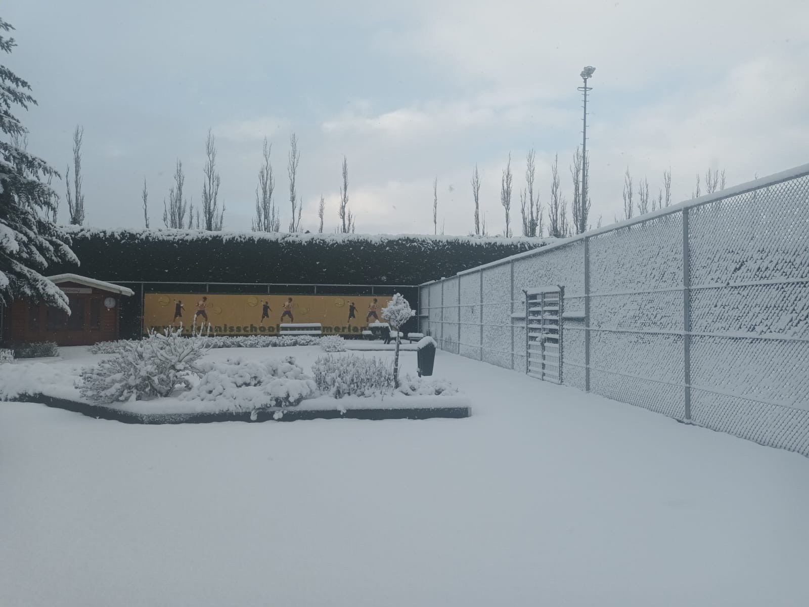 Bij sneeuw zijn de banen niet bespeelbaar. Sneeuw mag niet worden weggeveegd.